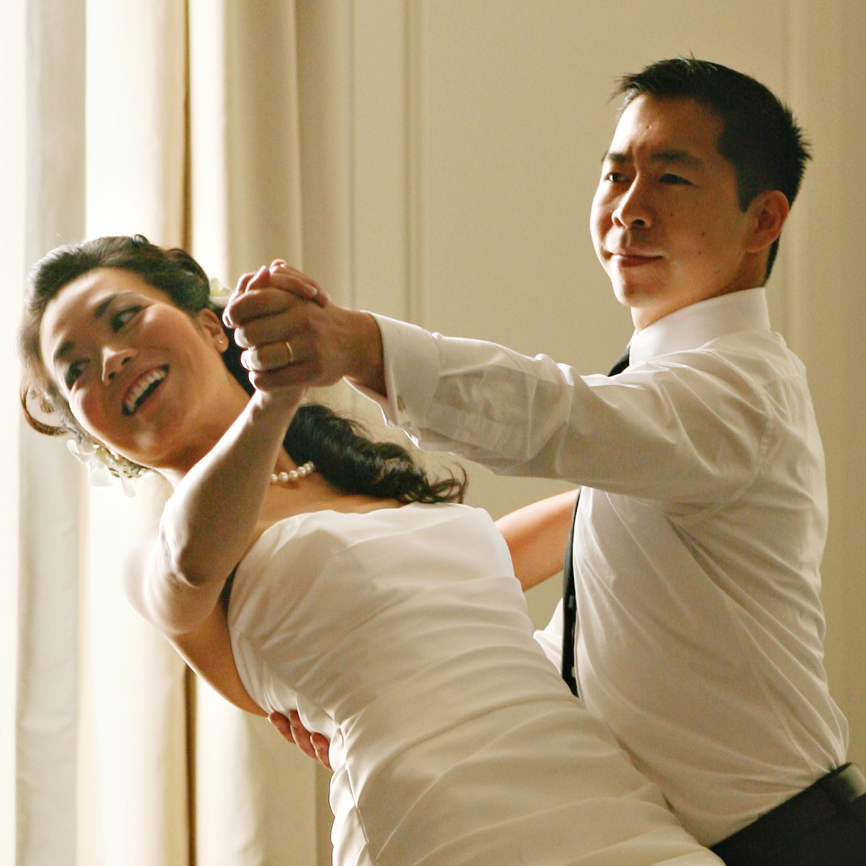 When you begin to plan your wedding, out come the bridal magazines, or scrapbooks of treasured photos and ideas. Your first thought is of the dress, and the ceremony. As the day approaches, suddenly you remember – I have to dance in front of people! For most couples, their only experience with partner dancing is rocking back and forth in a teenage slow dance.